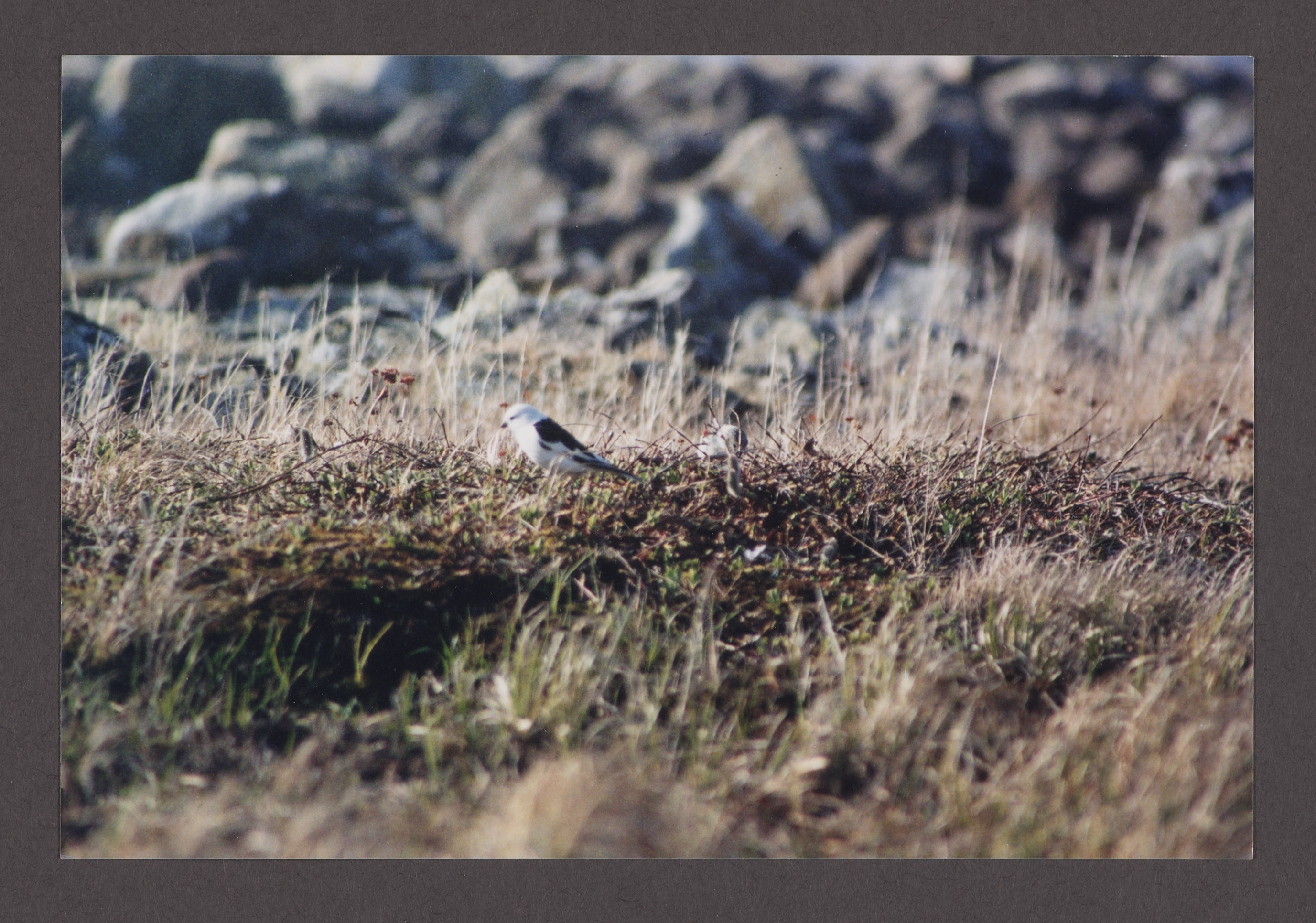 Color photograph of a bird among tall grass, taken during the June 1996 seabird survey.