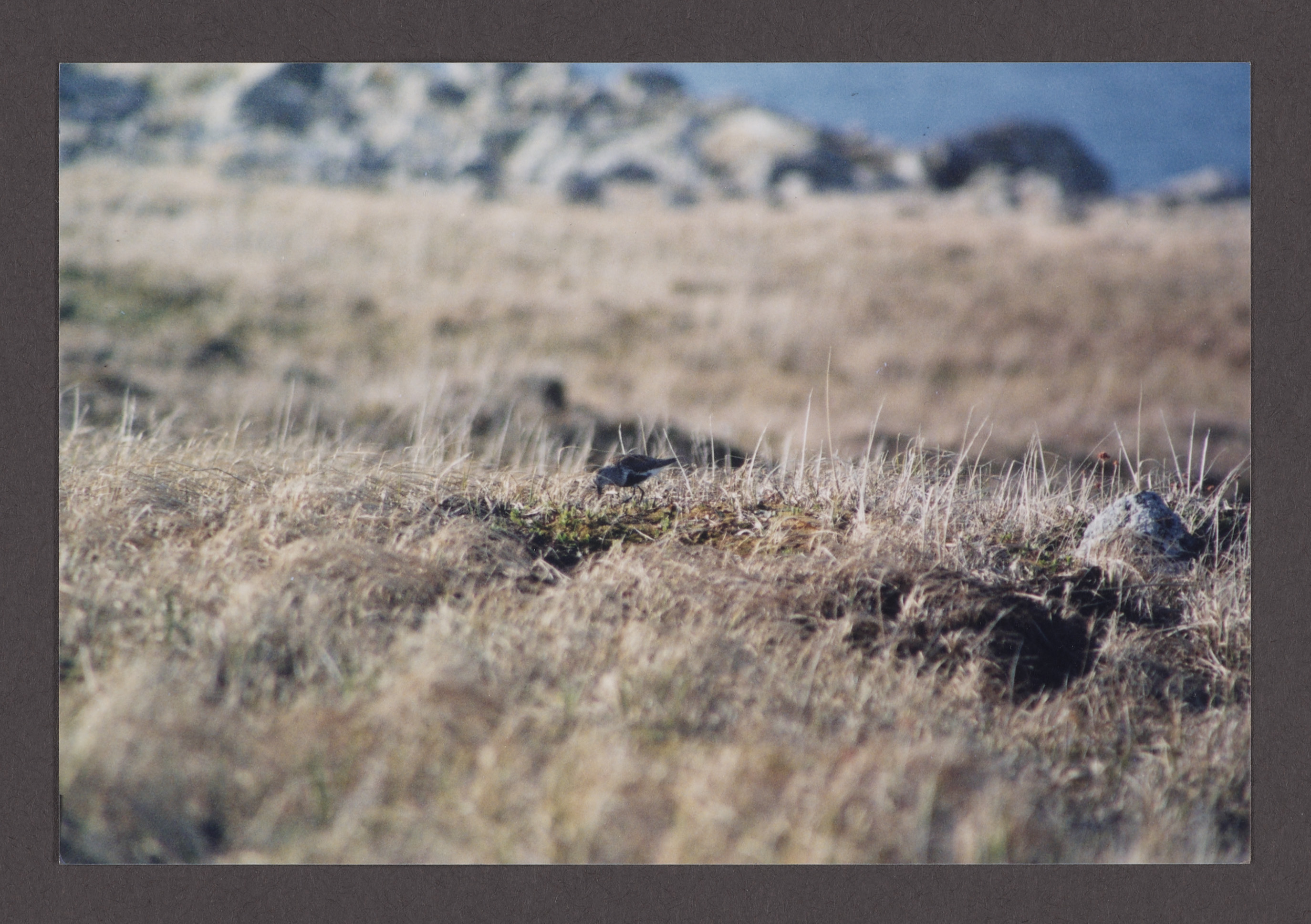 Color photograph of a bird among the grass, taken during the June 1996 seabird survey.
