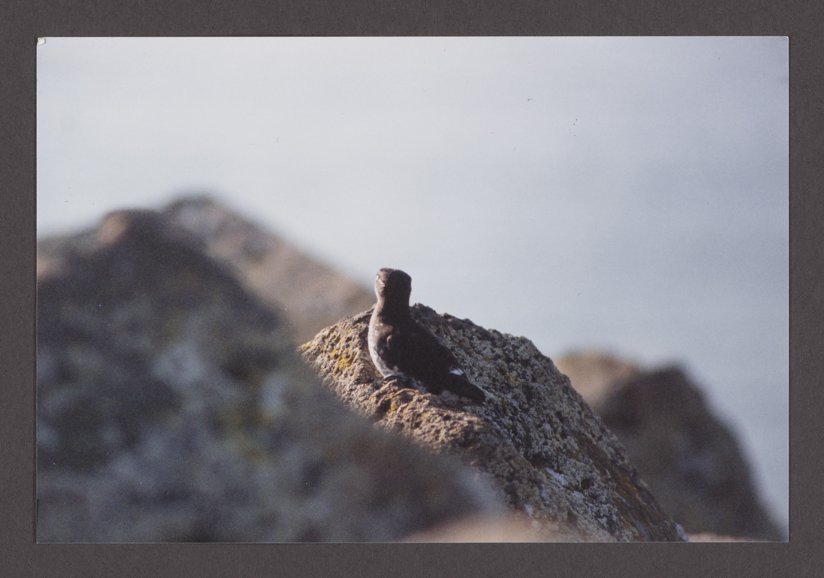 Color photograph of bird sitting on rocks, taken during the June 1996 seabird survey.