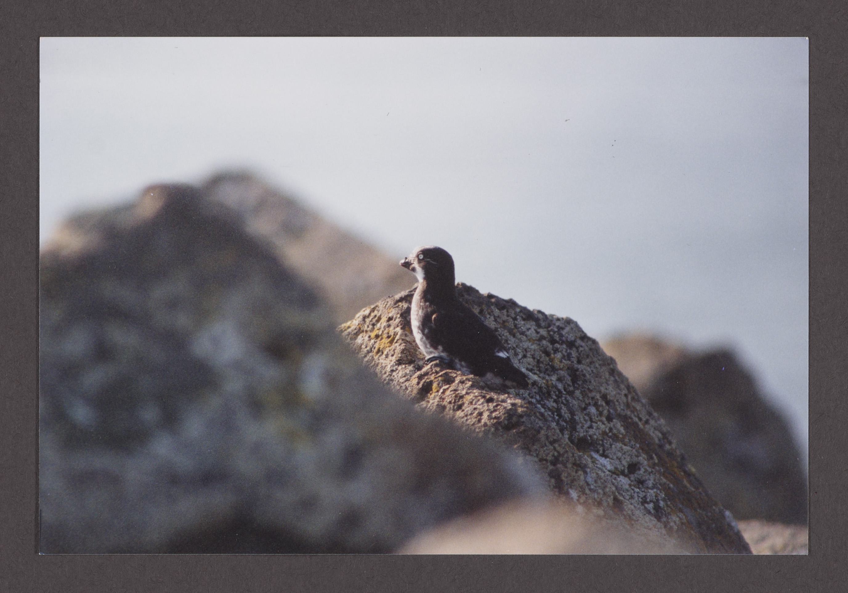 Color photograph of bird on the rocks, taken during the June 1996 seabird survey.